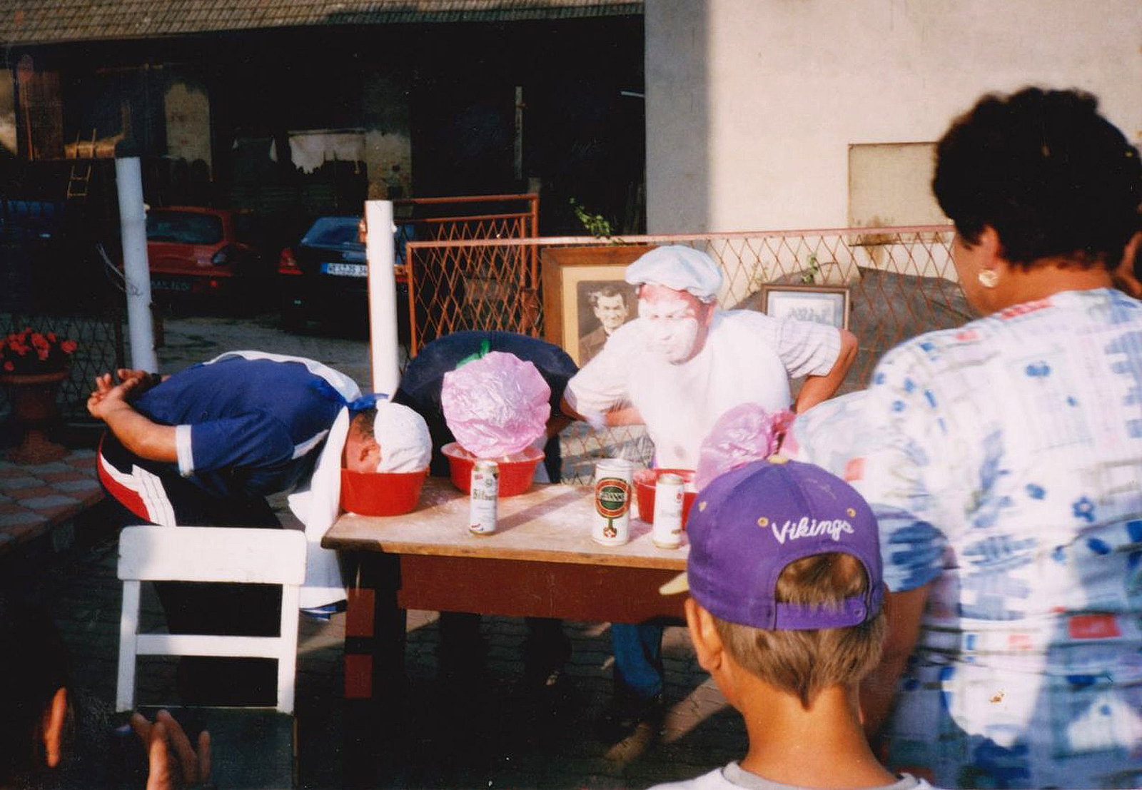 Była zabawa z piłeczką ping-pongową, którą trzeba było znaleźć w misce z mąką – śmiechu było dużo. Uczestnicy tej zabawy: I miejsce – Stanisław Tytko; II miejsce – Józef Tytko; III miejsce – Jerzy Tytko; IV miejsce – Waldemar Tytko - także otrzymali atrakcyjne nagrody. Zabawę tę prowadziła Helena Toman.