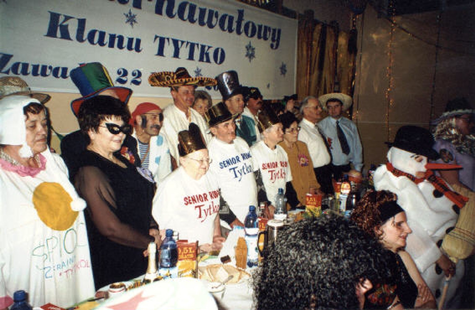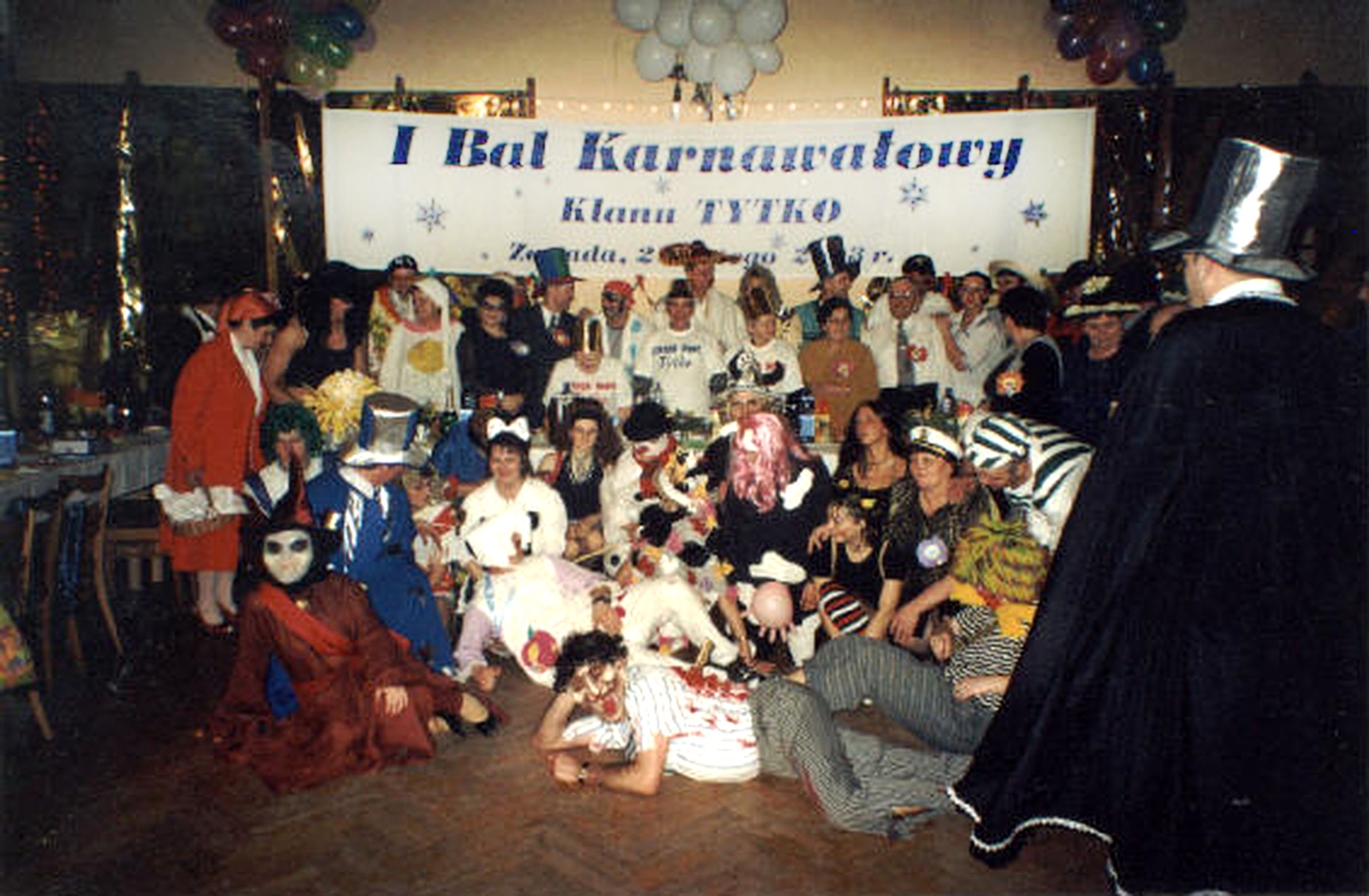A o godz. 22.oo zaczął się bal maskowy. Większość uczestników zamieniła swoje ubrania galowe na strój przebierańca. Mieliśmy więc na balu: klownów, bałwanka, Pipi, uczennicę I kl., bobasa, Pigwę, żyda, kokardkę, kwiaciarkę, krowę, byka, księżniczkę, czerwonego kapturka, śpiocha, lato, jesień, sportowca, kapelę podwórkową, pirata, meksykanina, indiankę, noc i czarodzieja.