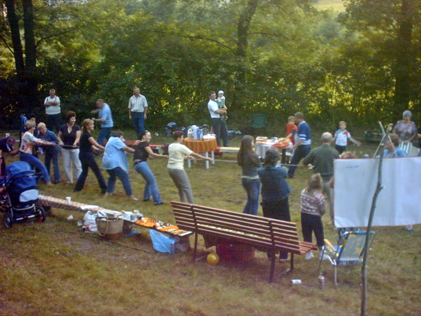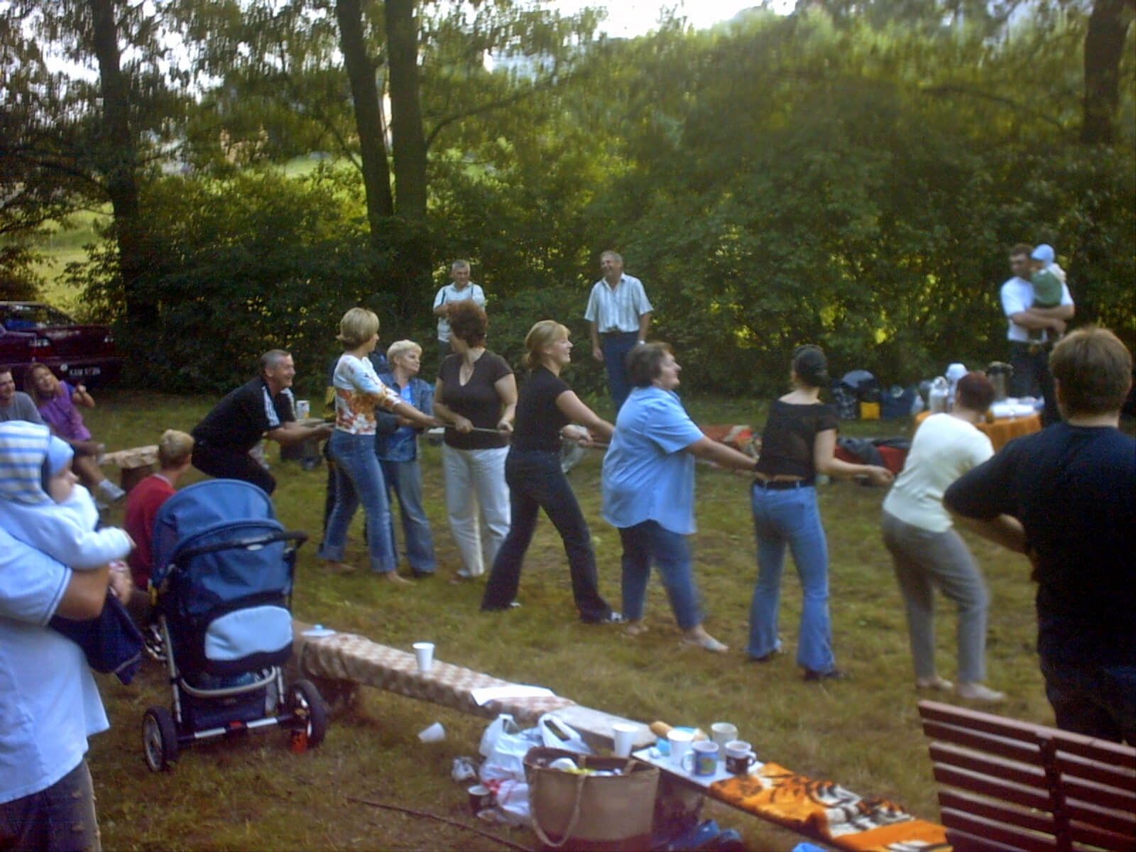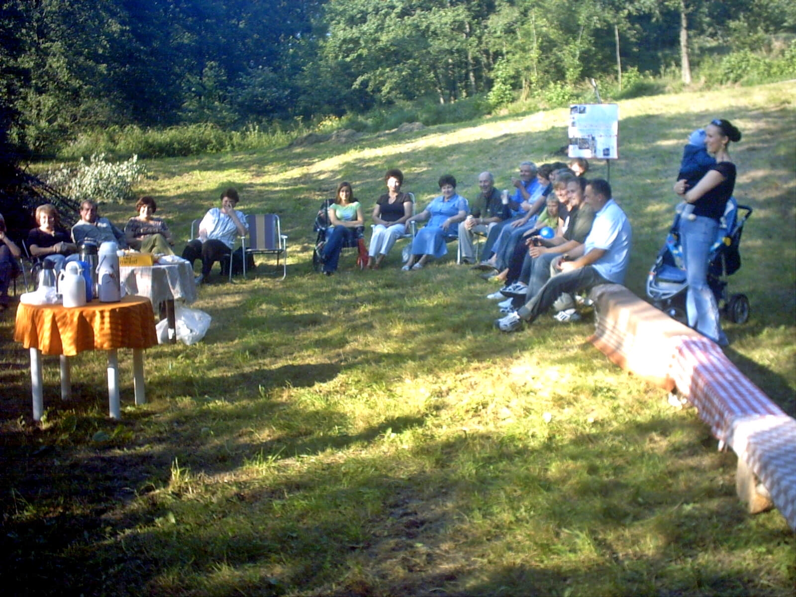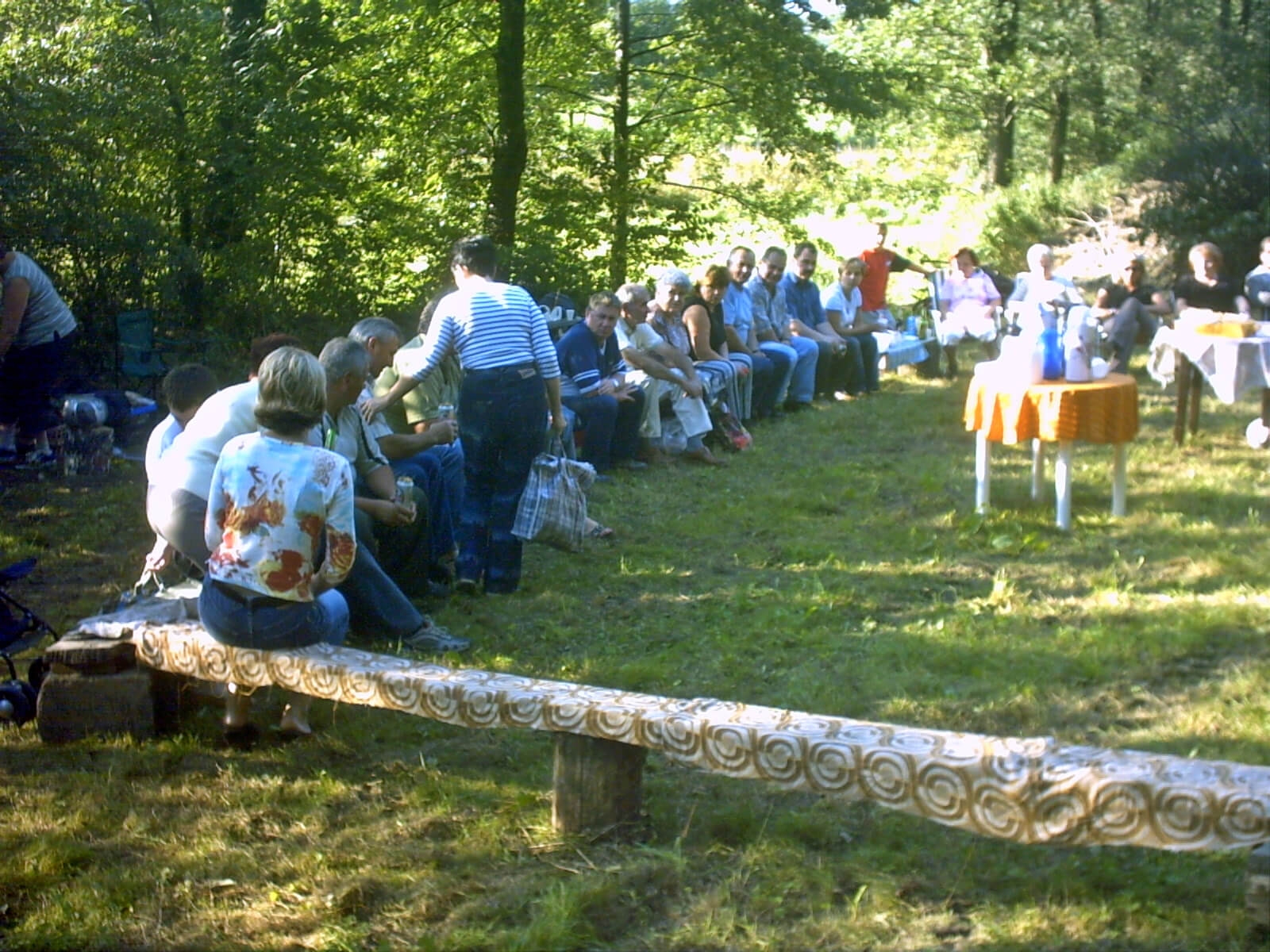 Każdy uczestnik spotkania mógł się poczęstować ciastem, napojami, a także upiec kiełbasę nad ogniskiem. Humory nam dopisywały, wszyscy zebrani bawili się wspaniale. Niestety czas szybko płynął i trzeba było kończyć spotkanie. Wszyscy wyrazili potrzebę doprowadzenia do kolejnego spotkania w 2006 roku.