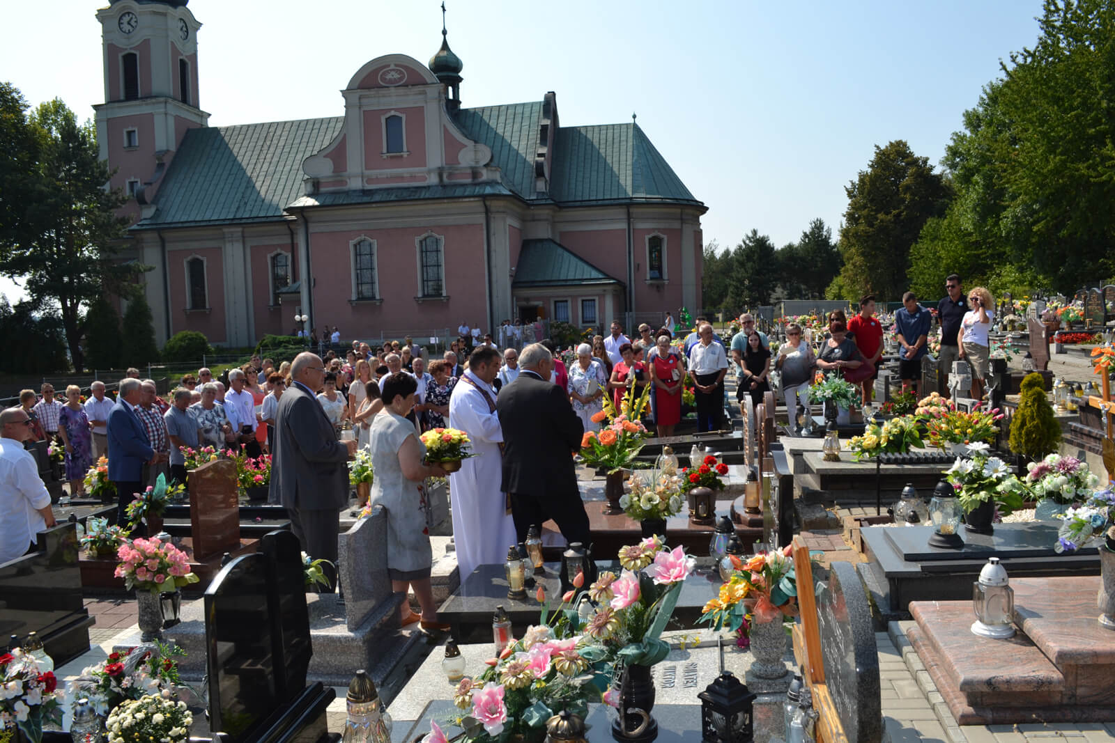 Ostatniego sierpnia w upalną sobotę spotkaliśmy się w Zawadzie obok kościoła. Każdy z uczestników otrzymał imienny buton. Odwiedziliśmy na cmentarzu zmarłych dziadków i najbliższych krewnych, aby się za nich pomodlić, złożyć kwiaty i zapalić znicze.